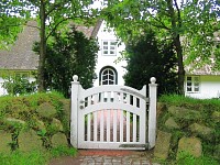 Typisches Nordfriesisches Gartentor mit Steinwall | Das Sylter Heimatmuseum in Keitum, zwei Walknochen am Eingang | ||||