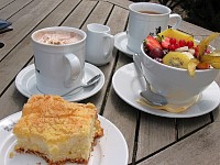 | Schokolade, Kaffee, Kuchen und Milchreis in der Kupferkanne | Blaue Idylle an der Westerländer Strandpromenade |