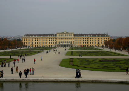 | Sissi's ungeliebte Heimat - Schloss Schönbrunn. Fotografiert von der Gloriette aus. Von dort oben bietet sich ein wunderschöner Panoramablick über Wien. Der Aufstieg über den Garten lohnt sich. | |||||||