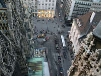 | Steiler Aufstieg (nichts für leute mit Platz- oder Höhenangst) und Aussicht vom Stephansdom auf den Stephansplatz |